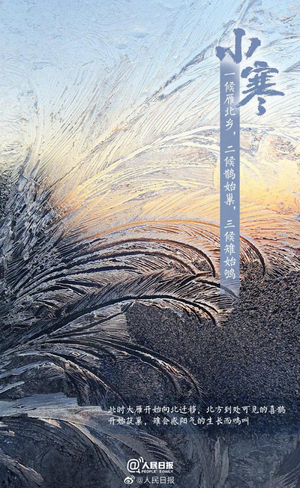 小寒,十二月节。月初寒尚小,故云,月半则大矣。——《月令七十二候集解》